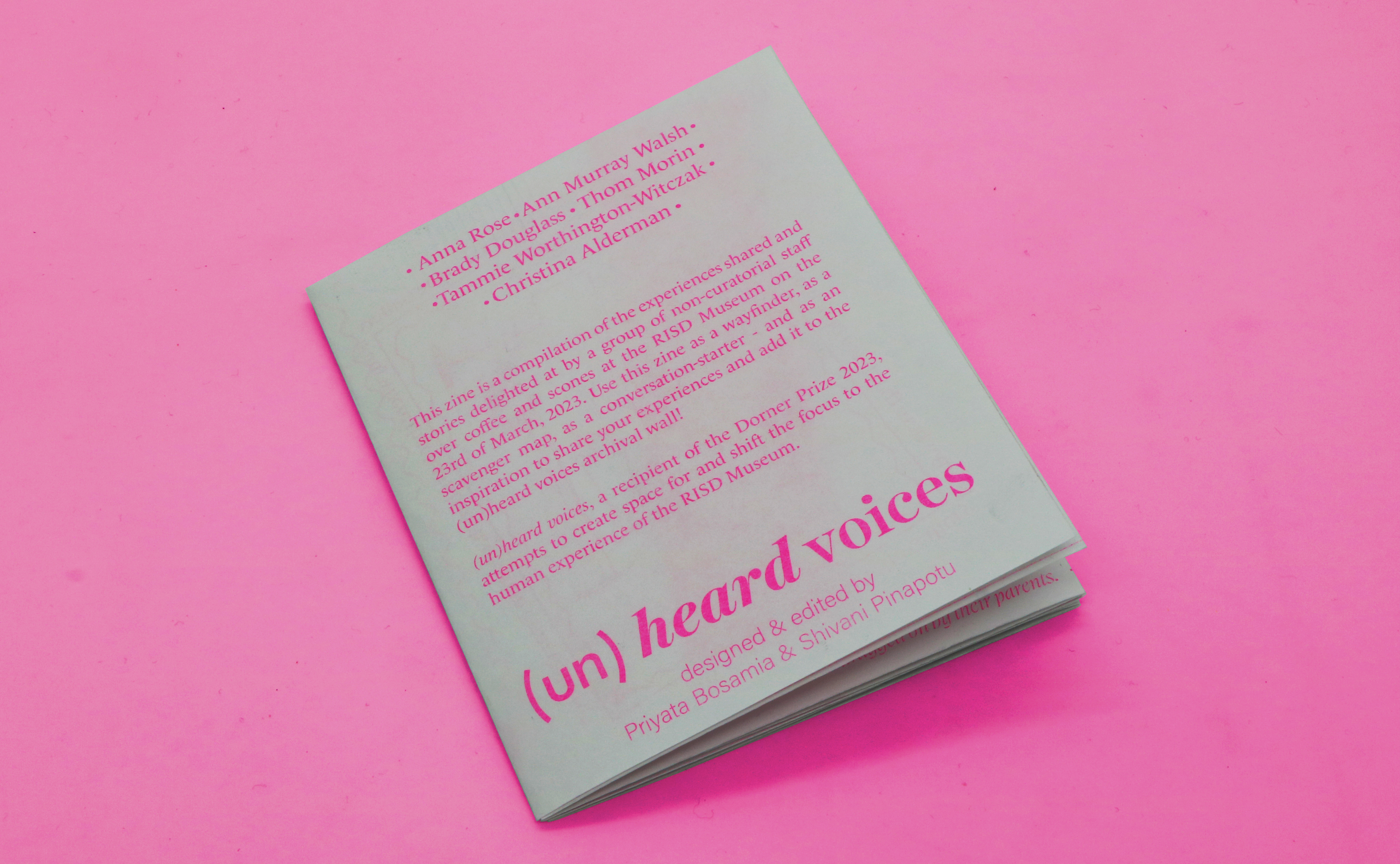 Our experience of the RISD Museum remains largely didactic. The way exhibits are understood and interpreted is prescriptive, creating a singular way of looking. This passive dialogue limits the museum’s potential and contribution to its public. (un)heard voices unearths voices in and outside of the RISD Museum to shift the focus to experiences beyond the expected. It initiates dialogue with museum visitors, non-curatorial workers, and others, foregrounding their opinions and amusements to break through the singular narrative and inspire dialogue and change. This project, at its core, intends to make the human experience of the Museum visible.